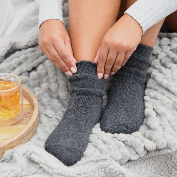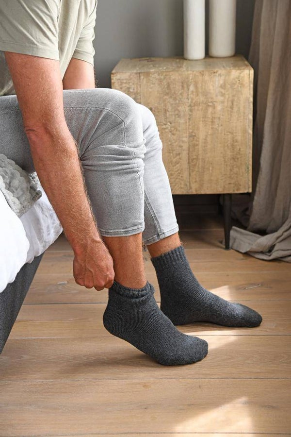 Geniet extra van de momenten dat je thuis bent met deze mooie huissokken van Leeff. De huissokken zijn heerlijk warm én stijlvol tegelijk. De verpakking is voorzien van de quote 'Warm Wishes', dat maakt het ook een leuk cadeautje voor iemand die je lief is. Verkrijgbaar in de maten 36 - 39 en 40 - 44. De sokken zijn gemaakt van 30% wol, 27% polyester, 20% acryl, 20% nylon en 3% elastaan en kunnen alleen met de hand worden gewassen